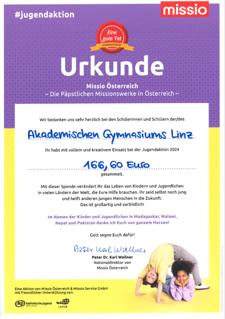 An unserer Schule, dem Akademischen Gymnasium Linz, unterstützen wir Religionslehrerinnen schon viele Jahre lang MISSIO mit dieser gelungenen Spendenaktion. Uns ist es aber auch eine Freude, wenn kleine Klassengruppen dem Büro von Missio in Linz direkt einen Besuch abstatten können und viele Informationen zum Päpstlichen Missionswerk und den unterschiedlichen Projekten bekommen.